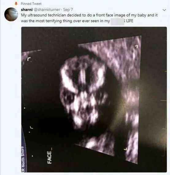 دیدن اولین عکس از جنین نه تنها برای "شارنی تونر" خوشایند نبود بلکه موجب شد تا شوکه شود."شارنی" اهل استرالیا عکس عجیبی از سونوگرافی جنینش را به اشتراک گذاشت و از ترس خود با دیدن آن برای اولین بار نوشت ، تصویری که بازدید بسیاری دریافت کرد و 31000 لایک گرفت.
