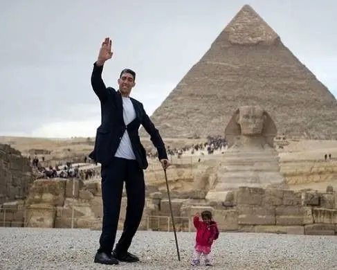 صاحبان رکورد ترین های قد در دنیا روز گذشته در کنار اهرام ثلاثه مصر باستانی با هم دیدار کردند سلطان کنن، از ترکیه، دارای بلندترین رکورد قد انسان در جهان با ارتفاع 246.5 سانتیمتر (8 فوت 1 اینچ) است و جیوتی امگه از هند دارای عنوان گینس برای کوتاه ترین زن جهان است که فقط 62.8 سانتی متر (2 فوت 06) قد دارد .