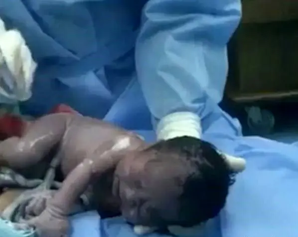 لحظه عجیب فرار نوزاد از شکم مادرش حین زایمان!+ عکس