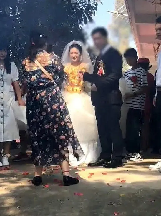 برخی مهمانان تلاش کردند به عروس خانم در راه رفتن کمک کنند، اما او با لبخند از پذیرش کمک خودداری کرد.
