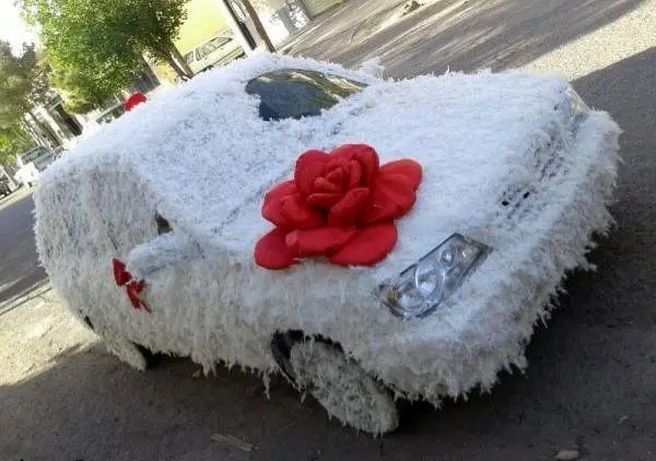مسخرهترین تزئین ماشین عروسی که تا کنون دیدهاید!+ عکس