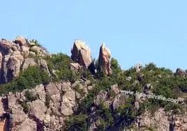 در بالاترین نقطه این کوه دو مجسمه سنگی به شکل عروس و داماد قرار دارد. طبق روایت محلیها در گذشتههای دور پسر و دختری بدون اجازه والدین خود زندگی زناشویی خود را آغاز میکنند تا اینکه به دلیل بیحرمتی مورد عاق والدین قرار میگیرند و در نقطهای که در حال حاضر به «عروس و داماد» معروف است، به شکل دو انسان تبدیل به سنگ میشوند.