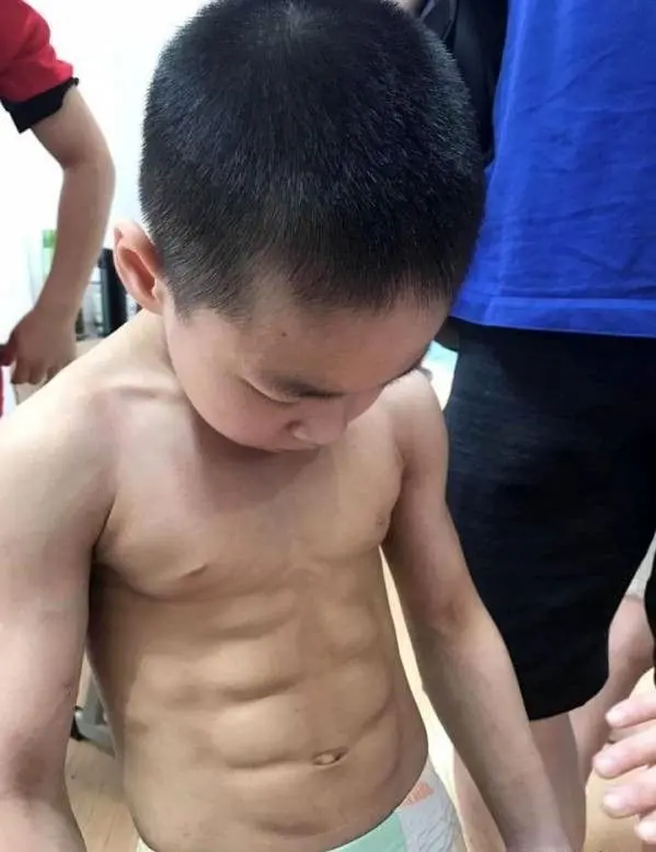 پسربچه ی خردسالی که از سن 5 سالگی محل تمرین خود را از خانه به باشگاه شهرش منتقل کرده است از شکم 8 تکه خود رو نمایی کرد.