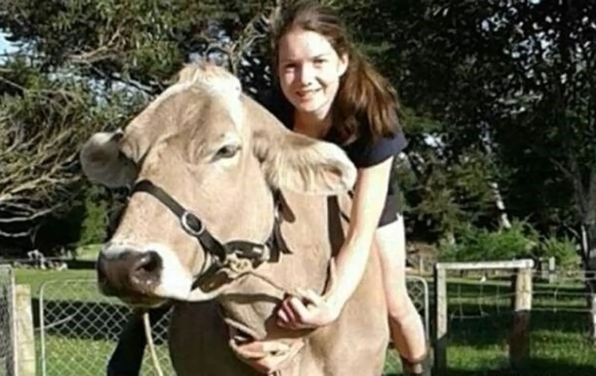 "هانا" 18 ساله از چند سال پیش تصمیم گرفت تا گاوش را مثل یک اسب تربیت کرده و با او سواری لذت بخش را تجربه کند.