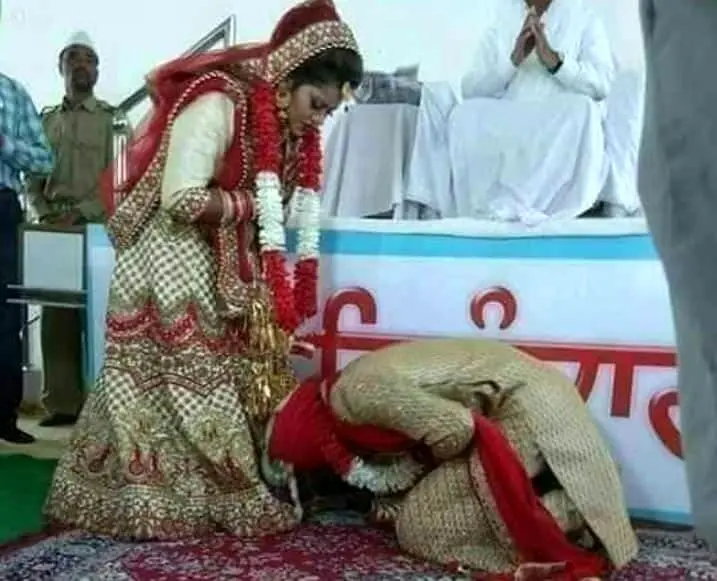 انتشار تصویری از یک داماد هندوستانی که بر خلاف رسم سنتی رایج اقدام به دست کشیدن روی کفش همسرش می کند، در رسانه ها خبرساز شد.
