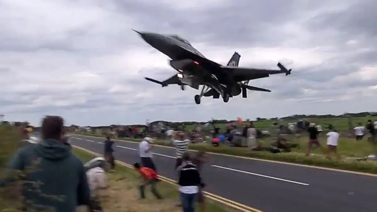 به گزارش منیبان؛ در این ویدیو می بینیم که خلبان جنگنده اف 16 هواپیما را رودتر از موعد به سمت باند هدایت می‌کند و با ارتفاع بسیار کمی از روی سر جمعیت حاضر رد می شود.