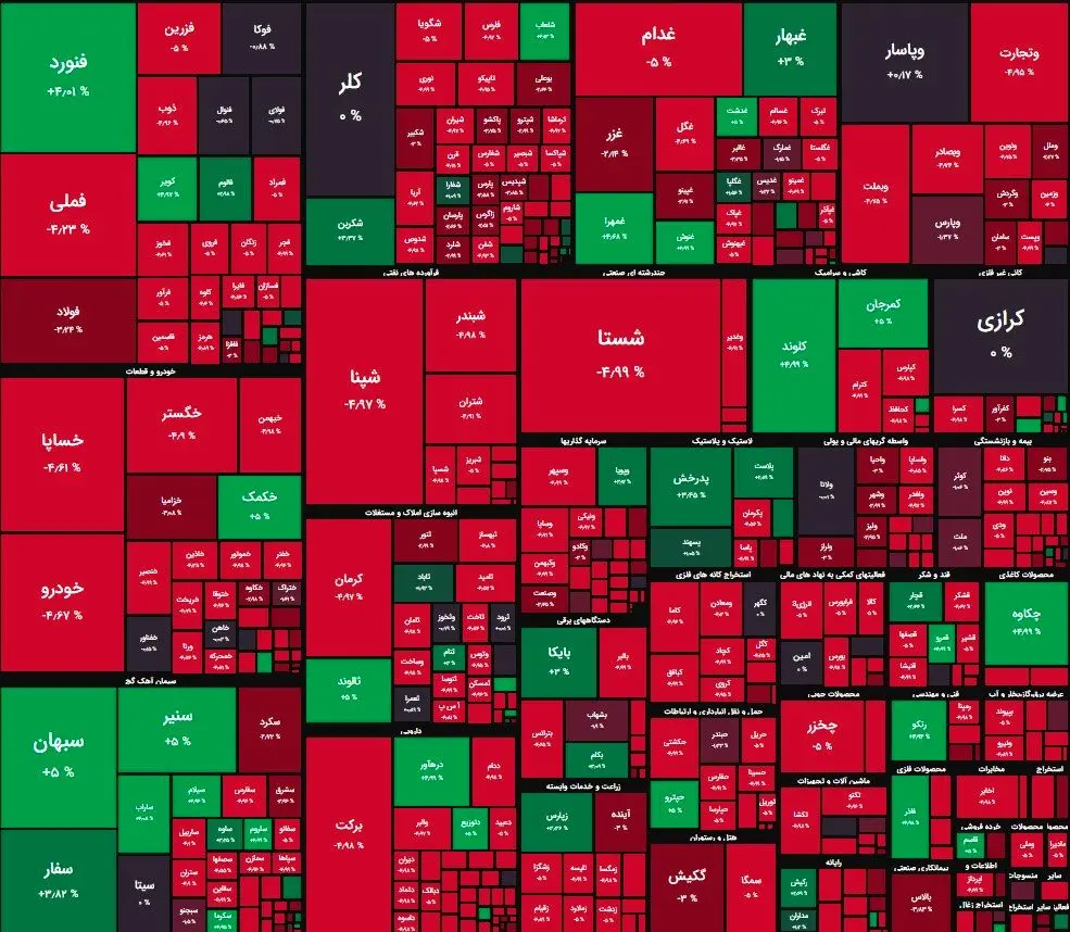 همچنین نمادهای شستا، خودرو، فملی، غزر، برکت، خساپا و شپنا پر تراکنشهای بازار بودند و نماد فولاد، فملی، شستا، فارس، شپنا، وبملت و خودرو بیشترین تاثیر را بر روند حرکت شاخص گذاشتهاند.