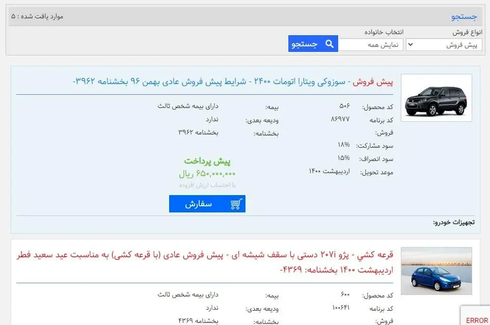 به گزارش منیبان، دیروز به مدت زمان محدودی در اثر نقص فنی، بخشنامه فروش خودروی سوزوکی با کد ۸۶۹۷۷ که مربوط به بهمن ماه سال ۱۳۹۶ بود مجددا در سایت فروش اینترنتی ایران خودرو فعال گردید اما پس از مدتی به محض اطلاع مسئولان از روی سایت حذف شد.