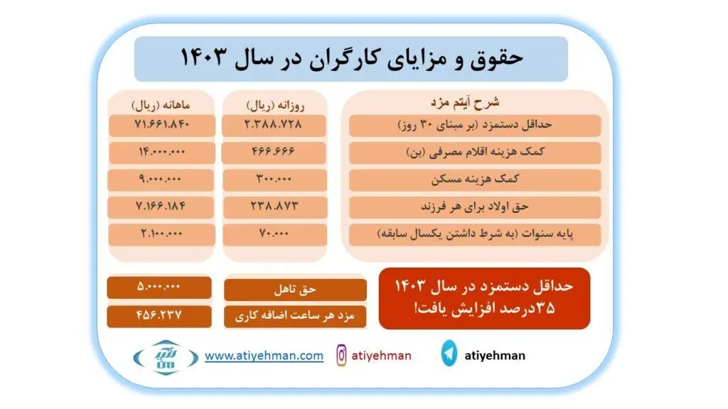 حداقل حقوق ماهانه (۳۰ روزه) معادل ۷۱,۶۶۱.۸۴۰ ریال