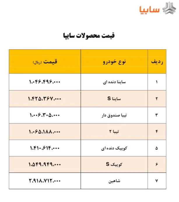 درپی تصمیم شورای رقابت مبنی بر افزایش قیمت کارخانه خودروهای سایپا از امروز قیمت جدید محصولات سایپا اعلام شد.