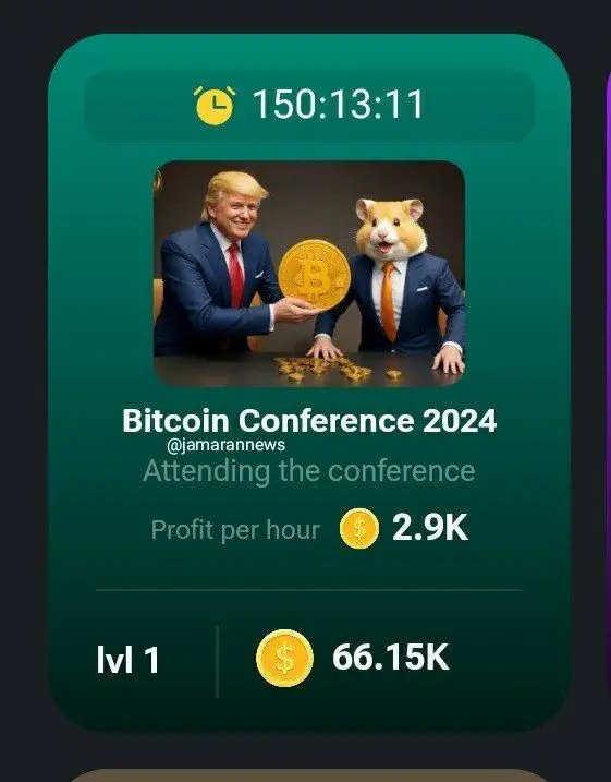 این کارت همستر به سخنرانی ترامپ در کنفرانس بیت کوین اشاره میکند.