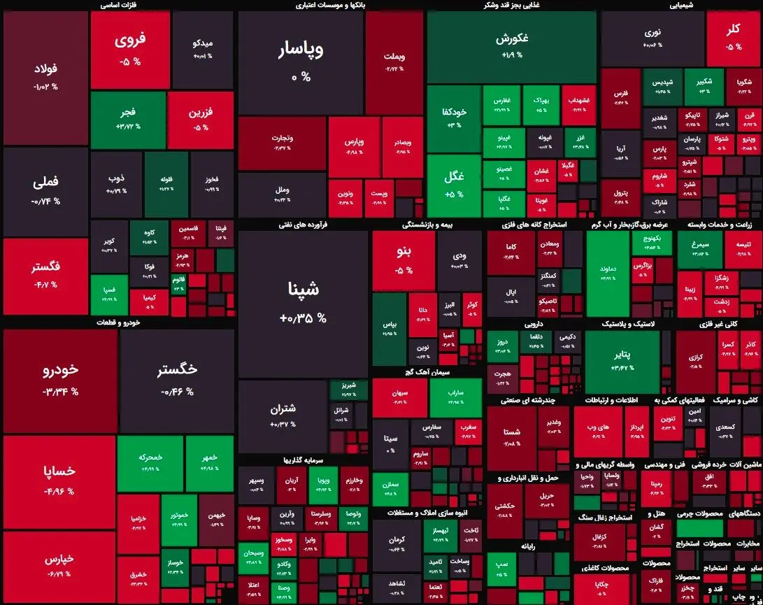 افت 6 هزار واحدی شاخص کل بورس + نقشه بازار