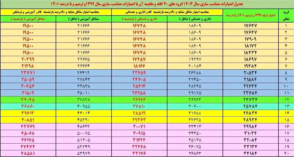 اعضای کمیته پیگیری متناسبسازی حقوق بازنشستگان، جدولی را که برای متناسبسازی حقوق بازنشستگان کشوری در سازمان برنامه و بودجه تهیه و بر سر آن توافق شده است، منتشر کردند.