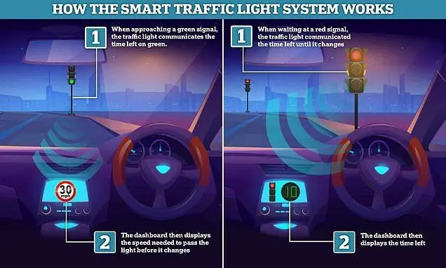 این چراغ‌های راهنمایی هوشمند می‌توانند اطلاعات را از فاصله حداکثر دو سوم مایل(یا یک کیلومتر) به ماشین‌های مجهز به این فناوری منتقل کنند.