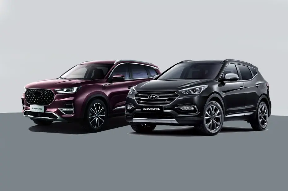 هیوندای سانتافه یک شاسیبلند دو دیفرانسیل است که در نسخههای فول آپشن تجهیزات و امکانات بسیار خوبی دارد، سواری آن نرمتر و آرامتر از تیگو 8 پرو است، فضای داخلی آن کابین جادار و خانوادگی است، پیشرانه آن برای این جثه مقداری کم توان احساس میشود، کیفیت مواد مصرفی در کابین آن ضعیفتر از تیگو 8 پرو است اما دوام بالایی دارد و در آخر بازار دست دوم آن بسیار پر رونق است و به راحتی میتوان نمونههای دست دوم آن را خرید و فروش کرد. مسالهای که همواره خودروهای چینی را با چالش جدی روبهرو ساخته است.