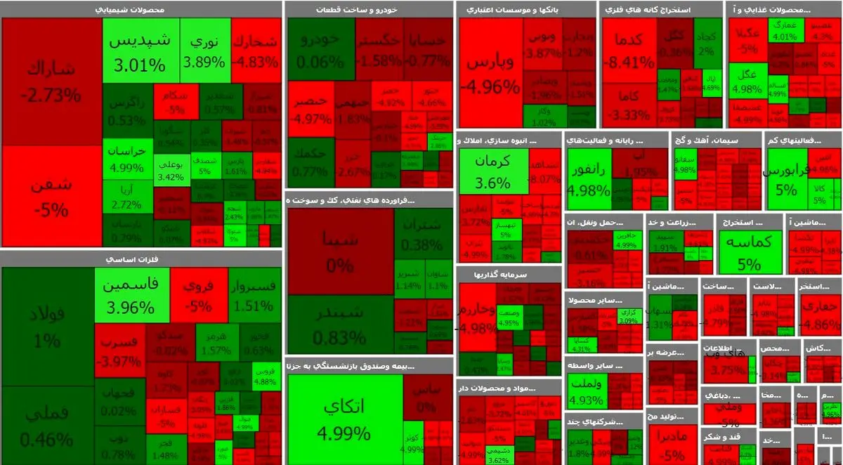 پایان سبز بورس در روز پر نوسان شاخص کل + نقشه بازار