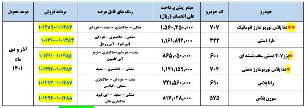 ایران خودرو طرح پیش فروش شش محصول خود را با موعد تحویل آذر و دی ماه 1401 به اجرا می گذارد.