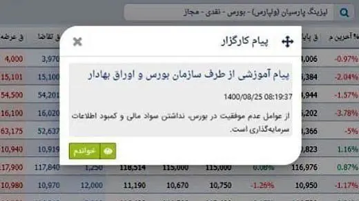 سازمان بورس، برای کاربران خود پیامی عجیب فرستاد که هدف نامعلوم این پیام برای سرمایه گذاران سردرگمی به همراه داشت.