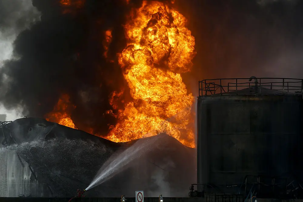 آتش نشانان در حال مبارزه برای مهار آتش سوزی هستند و مشخص نیست چه چیزی باعث آتش گرفتن این پالایشگاه شده است.