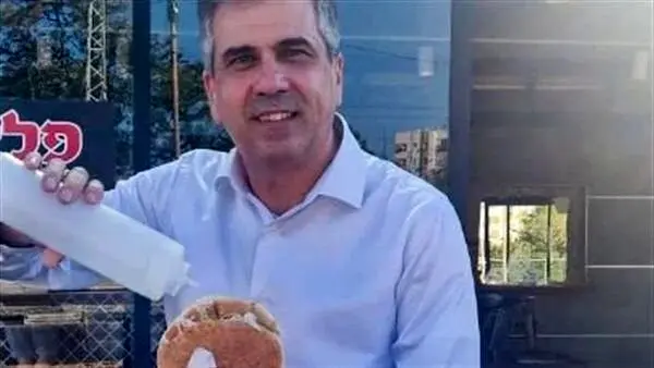 وزیر خارجه رژیم صهیونیستی عکسی از خود منتشر کرد که ساندویچ فلافل را در دست دارد و در دست دیگرش بطری خالی سس را گرفته است.