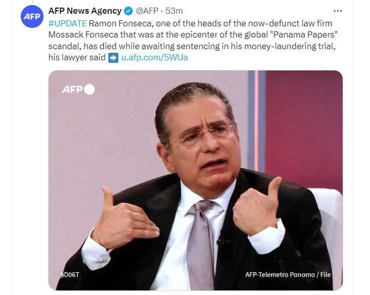 به گزارش منیبان؛ خبرگزاری فرانسه گزارش داد: رامون فونسکا یکی از افراد حقوقی درگیر در پرونده اسناد پاناما{بزرگترین افشای فساد مالی سیاستمداران جهان} که منتظر برگزاری دادگاه پولشویی بود، درگذشت.