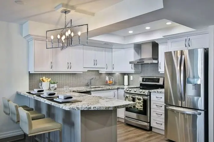 این روزها سنگهای گرانیتی محبوبیت بیشتری دارند، البته اگر آشپزخانه کوچکی دارید،کاشی بین کابینتی سفید برای شما مناسب است زیرا منجر به افزایش بازتاب نور و باز شدن فضای آشپزخانه می شود. از کاشی هایی با طرح های شلوغ خیلی پر زرق و برق در خانه کوچک استفاده نکنید زیرا این کاشی های بین کابینتی منسوخ شده اند.