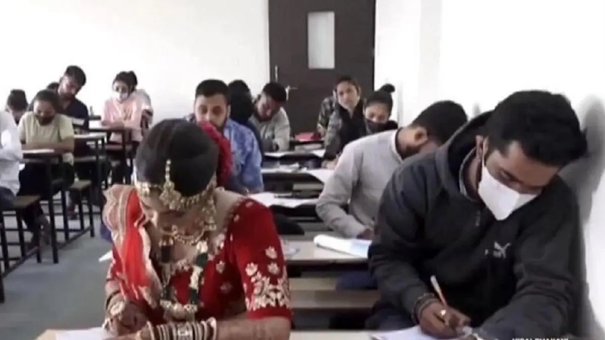 عروس هندی پیش از حضور در محل برپایی جشن عروسی اش، با لباس عروس در جلسه امتحان دانشگاه شرکت کرد.