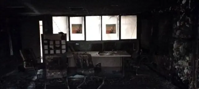 تقریباً تمامی وسایل این دفتر اعم از کتابها، صندلیها، دستگاه فکس، کشوها و میز جلسات، تخته و تصاویر در آتش سوخته و قابل استفاده نیستند.