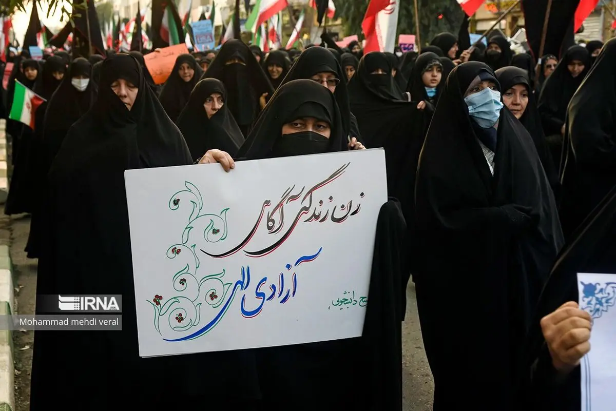 تجمع زنان محجبه در قم / پلاکارد «زن، زندگی...» + عکس