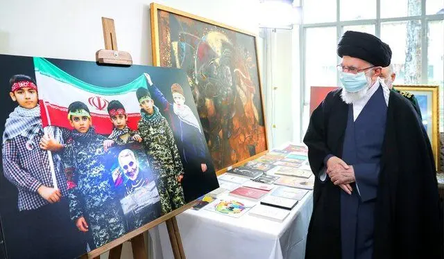 بازدید رهبری از نمایشگاه تولیدات فرهنگی هنری پیرامون شهید سلیمانی