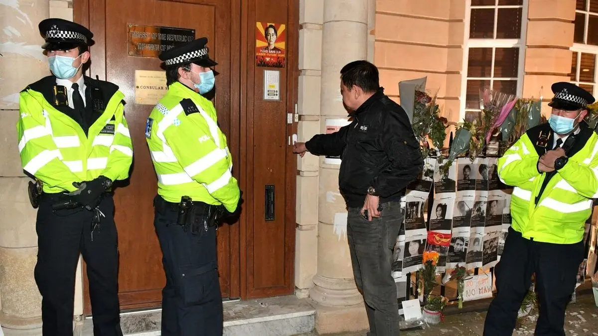 این دیپلمات میانماری عنوان کرده که «چیت وین» وابسته نظامی سفارت میانمار در لندن، محل این سفارت را اشغال کرده و از دیشب اجازه ورود او به داخل ساختمان را نداده است. "مین" این وضعیت را مشابه کودتای نظامی در میانمار توصیف و عنوان کرد، این اقدام نه تنها توهین به مردم میانمار که به جامعه دمکراتیک بشمار میرود.