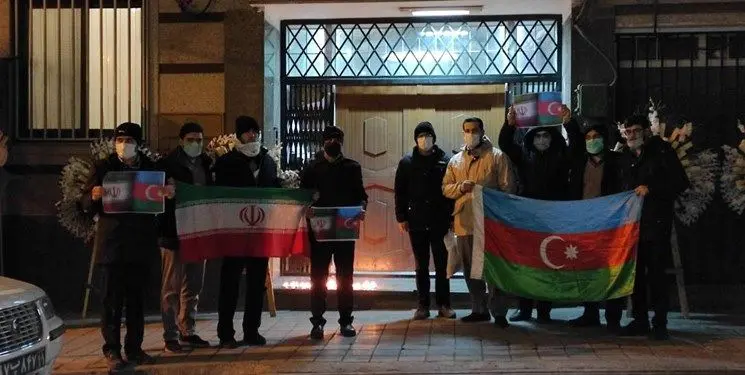 جمعی از دانشجویان دانشگاههای تهران شب گذشته با حضور مقابل سفارت جمهوری آذربایجان در تهران با مردم این کشور ابراز همدردی کردند.