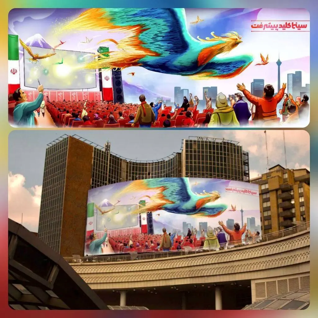دیوارنگاره میدان ولیعصر تهران به مناسبت چهل و و یکمین جشنواره فیلم فجر تغییر کرد.
