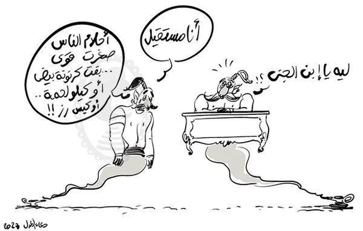 دیدم این کاریکاتور مصری، بیانِ حال و روز اقتصادی ما و مردم ما هم هست: غولِ چراغ جادو نزد اربابش رفته و استعفایش رو تقدیم کرده.