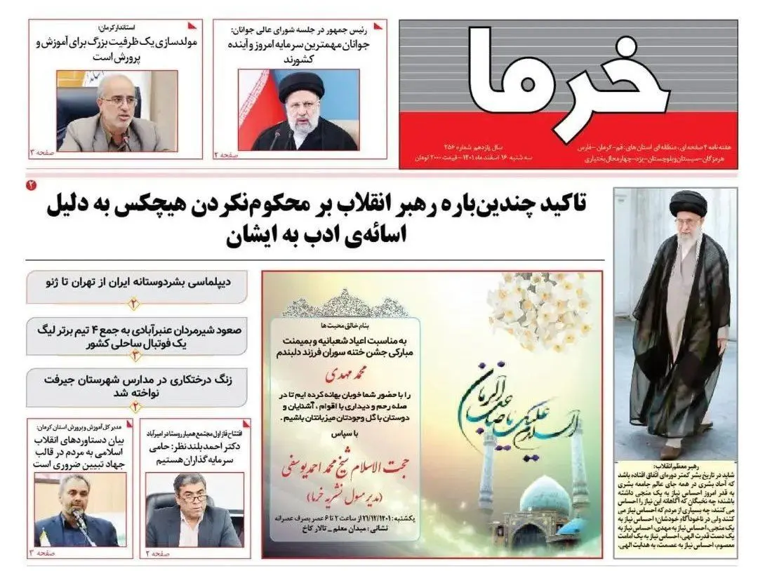 جشن ختنه سوران پسر مدیر مسوول در صفحه اول دو هفتهنامهی خرما دیده میشود.