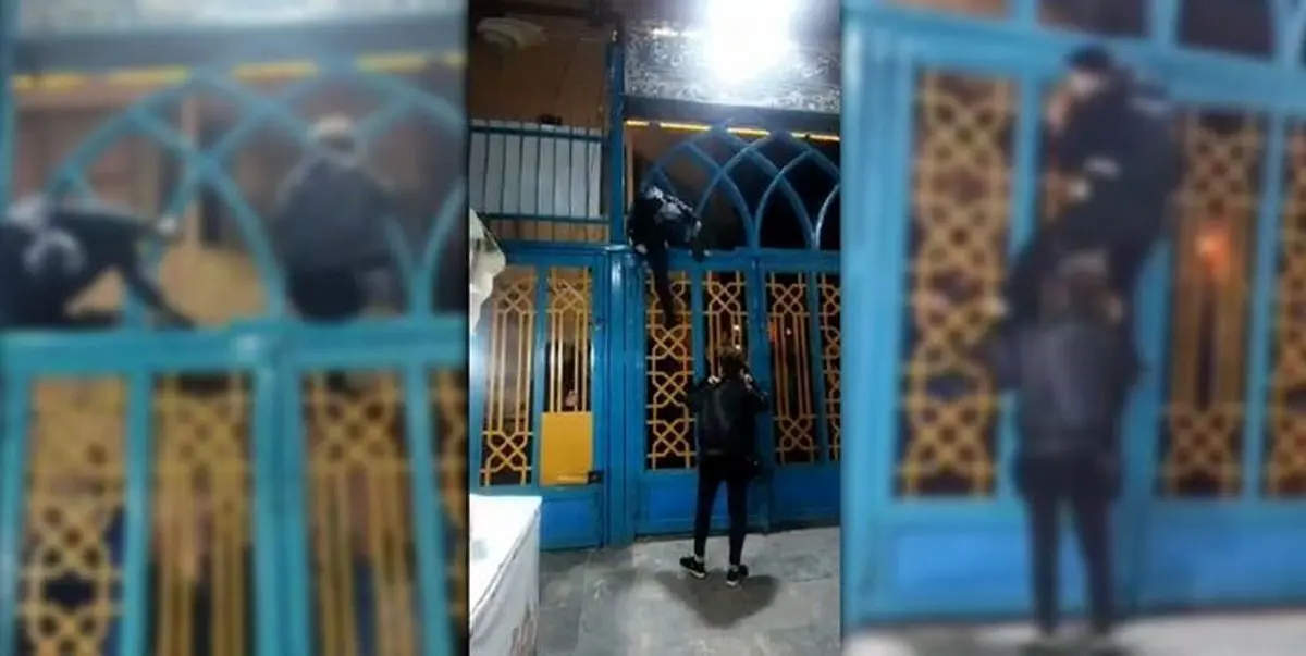 به گزارش منیبان، تصاویر عجیبی از محبوس شدن دو دختر در حیاط امامزاده که نشان میدهد آنها با بالا رفتن از درب اصلی امامزاده از محوطه خارج میشوند.
