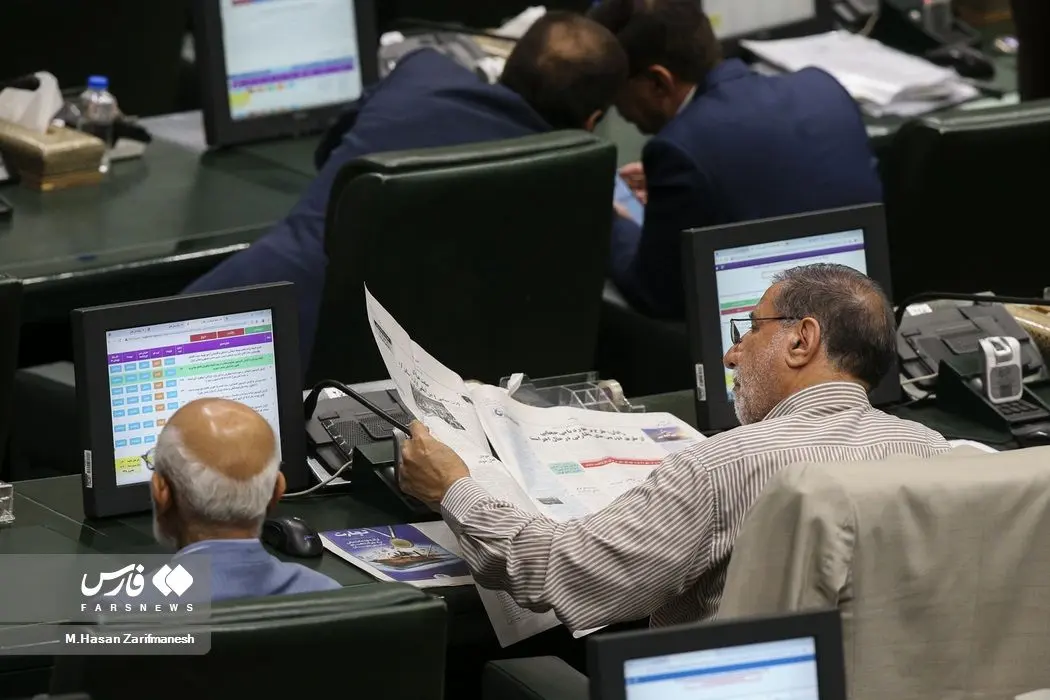 نماینده مجلس در حال خواندن روزنامه در صحن مجلس+ببینید