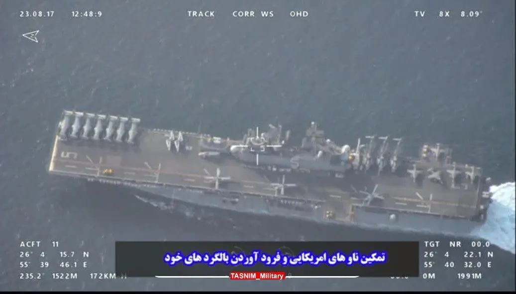 به گزارش منیبان، در این رصد ناوبالگردبر شناور آمریکایی‌ها مبادرت به پرواز بالگرد می‌کنند اما بعد از اخطار کنترل باند تنگه هرمز، ناو تیپ ذوالفقار که مسئولیت کنترل باند ورودی را عهده‌دار است و حضور شناورهای نیروی دریایی سپاه، آنها مجبور به نشاندن بالگردها بر روی ناو می‌شوند.