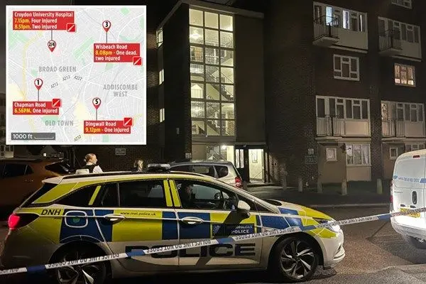 به گزارش روزنامه «سان» انگلیس، نیروهای پلیس پنج گزارش چاقوکشی بین ساعت ۶ و ۵۶ دقیقه عصر تا ۹ و ۱۲ دقیقه شب به وقت محلی در منطقه «کرویدون» در لندن دریافت کردند و دو نفر در ارتباط با این حوادث دستگیر شدند.