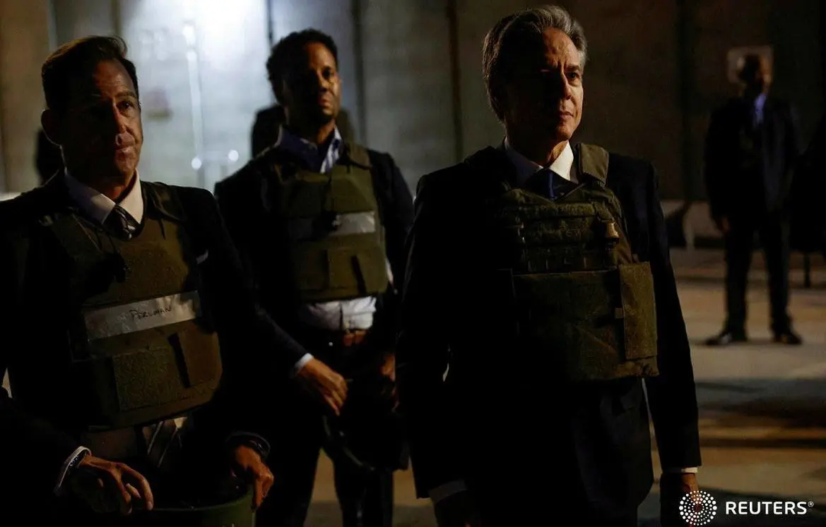 بلینکن با جلیقه ضدگلوله وارد فرودگاه بغداد شد.