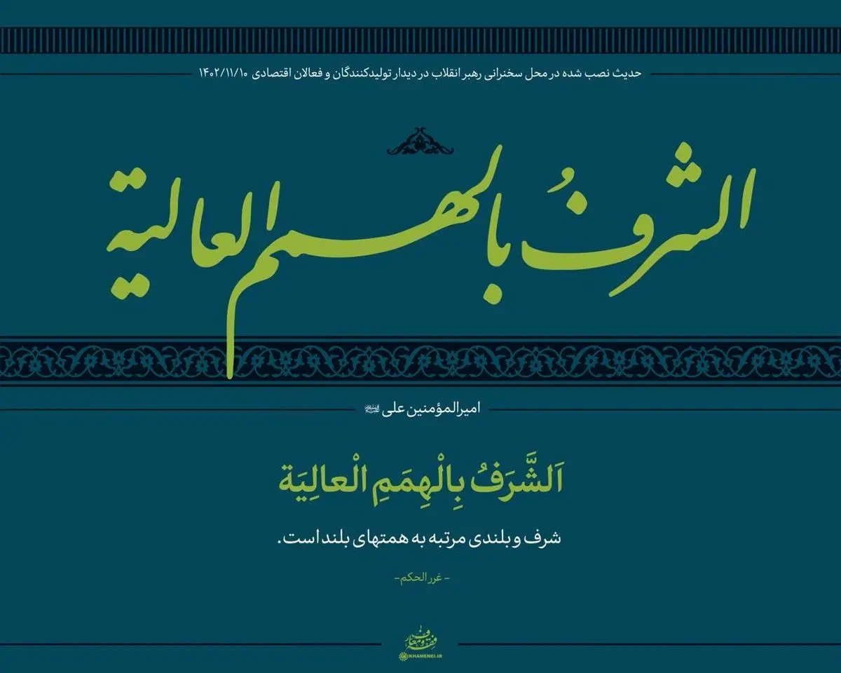 به گزارش منیبان، حدیث نصب شده در محل سخنرانی رهبر انقلاب امروز در دیدار تولیدکنندگان و فعالان اقتصادی به شرح زیر است: