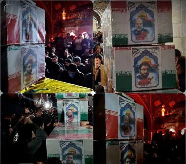 به گزارش منیبان، پیکر سردار سرتیپ پاسدار محمدرضا زاهدی و سردار سرتیپ پاسدار محمدهادی حاجی رحیمی و پنج شهید دیگر که در حمله روز دوشنبه رژیم صهیونیستی به کنسولگری ایران در دمشق به شهادت رسیدند در حرم حضرت رقیه(س) تشییع شد.