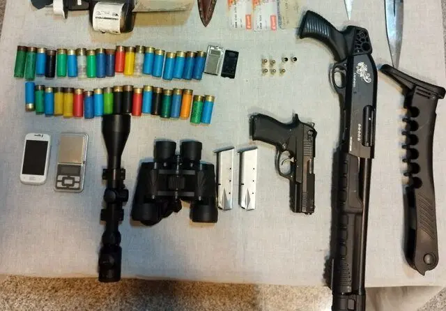 ب- سلاح شکاری یا مهمات یا قطعات مؤثر آن به حبس درجه شش و جزای نقدی به میزان سه تا پنج برابر ارزش روز آن