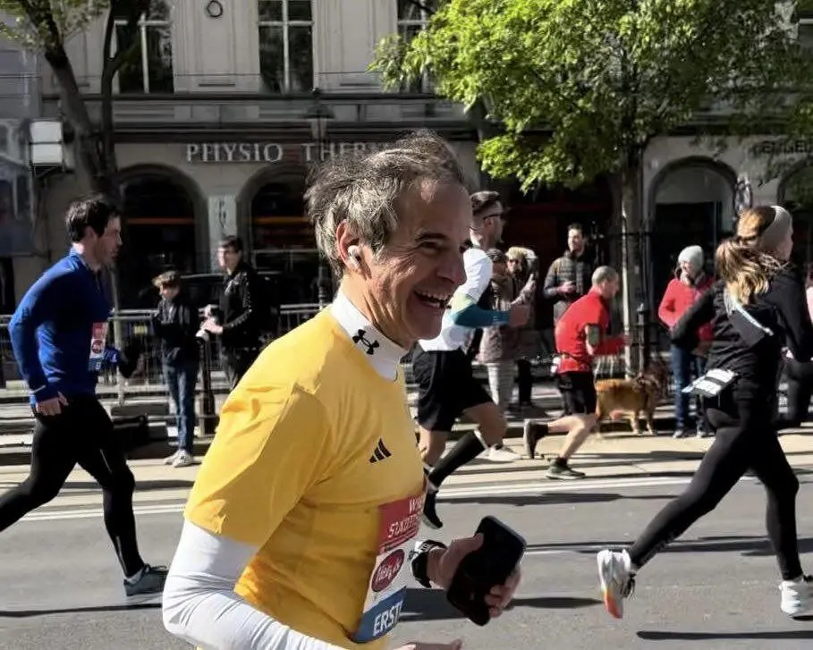 تصویری از حضور رافائل گروسی، مدیرکل آژانس جهانی انرژی اتمی، در رقابت دوی ماراتن وین با چهرهای خندان منتشر شده است.