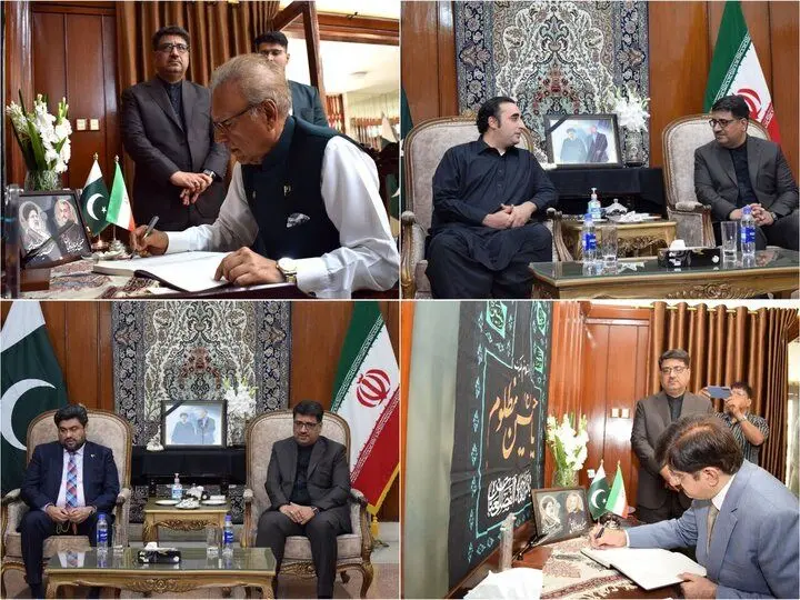 رئیس جمهور و وزیر امور خارجه سابق پاکستان و همچنین مقامهای بلندپایه دولت ایالت سِند در جنوب پاکستان برای تسلیت در سرکنسولگری جمهوری اسلامی ایران در «کراچی» حضور یافتند.