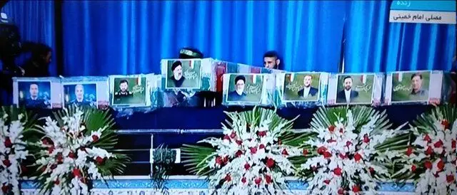 وداع با پیکر رئیس‌جمهور و شهدای خدمت در مصلی تهران در حال برگزاری+ فیلم