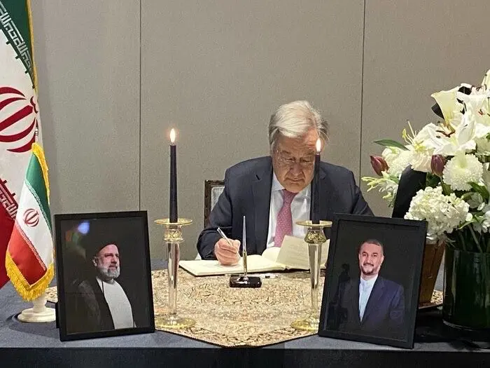 دبیرکل سازمان ملل متحد با حضور در نمایندگی جمهوری اسلامی ایران نزد سازمان ملل به رئیس جمهور و وزیر امور خارجه شهید ایران و سایر شهدای سانحه بالگرد ایرانی ادای احترام کرد.