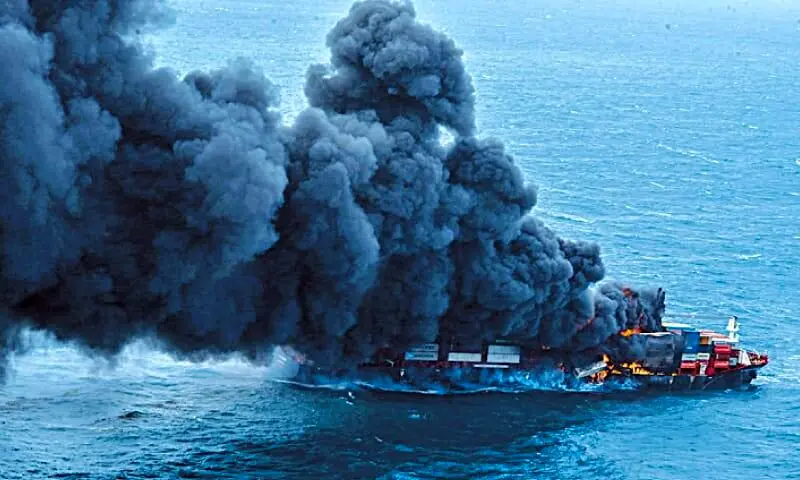 کشتی تجاری در آبهای سریلانکا آتش گرفت+جزییات