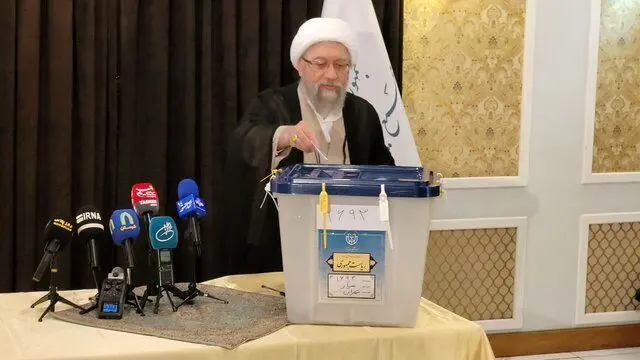 به گزارش منیبان، آیت‌الله صادق آملی لاریجانی رئیس مجمع تشخیص مصلحت نظام صبح جمعه ۸ تیر ۱۴۰۳ با حضور در شعبه اخذ رای مستقر در شورای نگهبان رای خود را در صندوق انتخابات چهاردهمین دوره ریاست‌جمهوری انداخت.