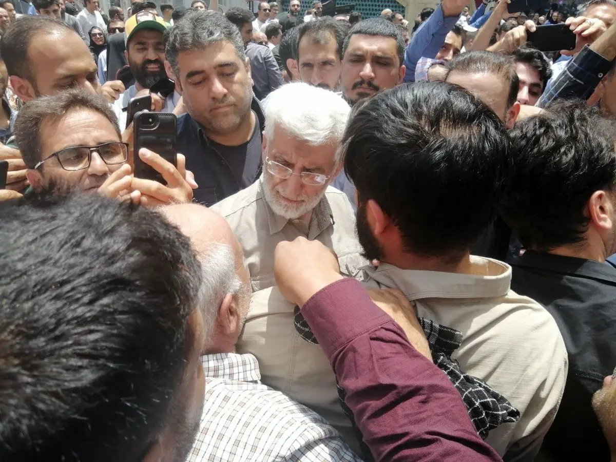 بنابر گزارش ایسنا، هواداران سعید جلیلی در بازار تهران با سر دادن شعارهای، «جلیلی جلیلی حمایتت می کنیم»، «جلیلی قهرمان برس به داد ایران» و «صل علی محمد بوی رئیسی آمد» به استقبال وی رفتند.